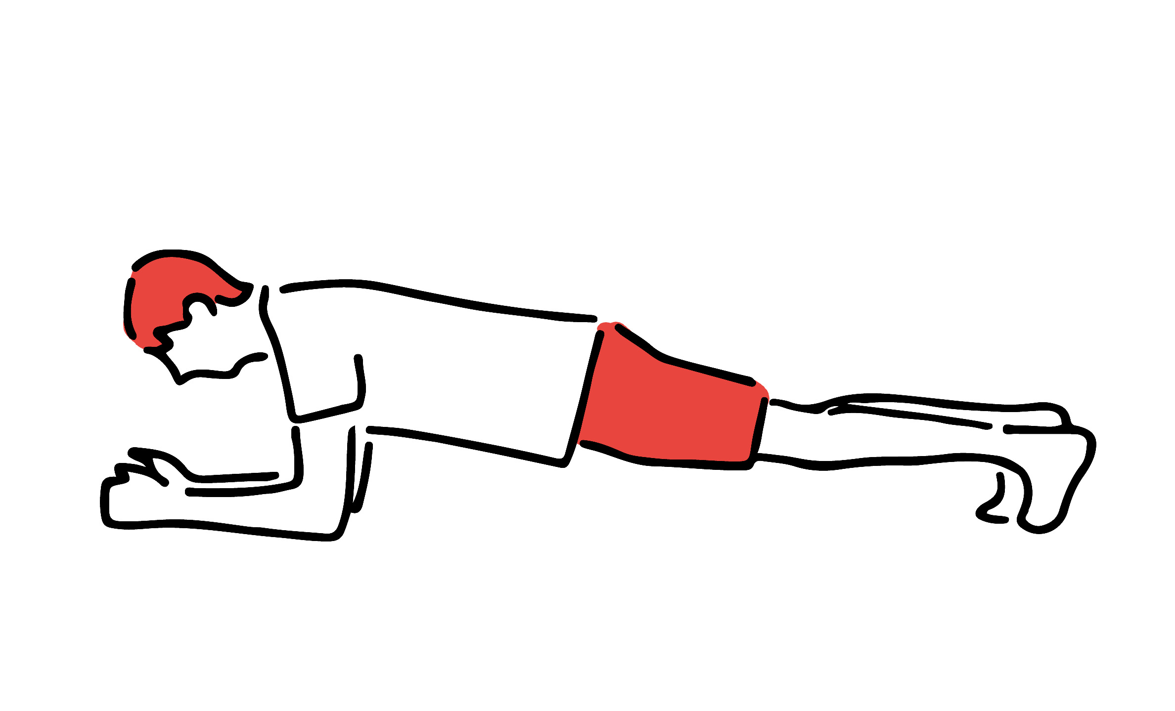 このエクササイズは、身体を直線状に保ちながら地面に対して水平に横たわる姿勢を保ちます。